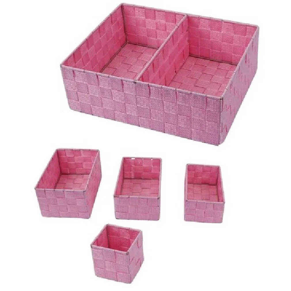 Organizer in tessuto con struttura in metallo ideale per poter tenere sempre in ordine accessori, bagnoschiuma, sapone e molto altro. E’ possibile inserirli in cassetti e armadietti per tenerli in ordine o da posizionare su scaffali e mensole. Il set è composto da 11 scatole di varie dimensioni: