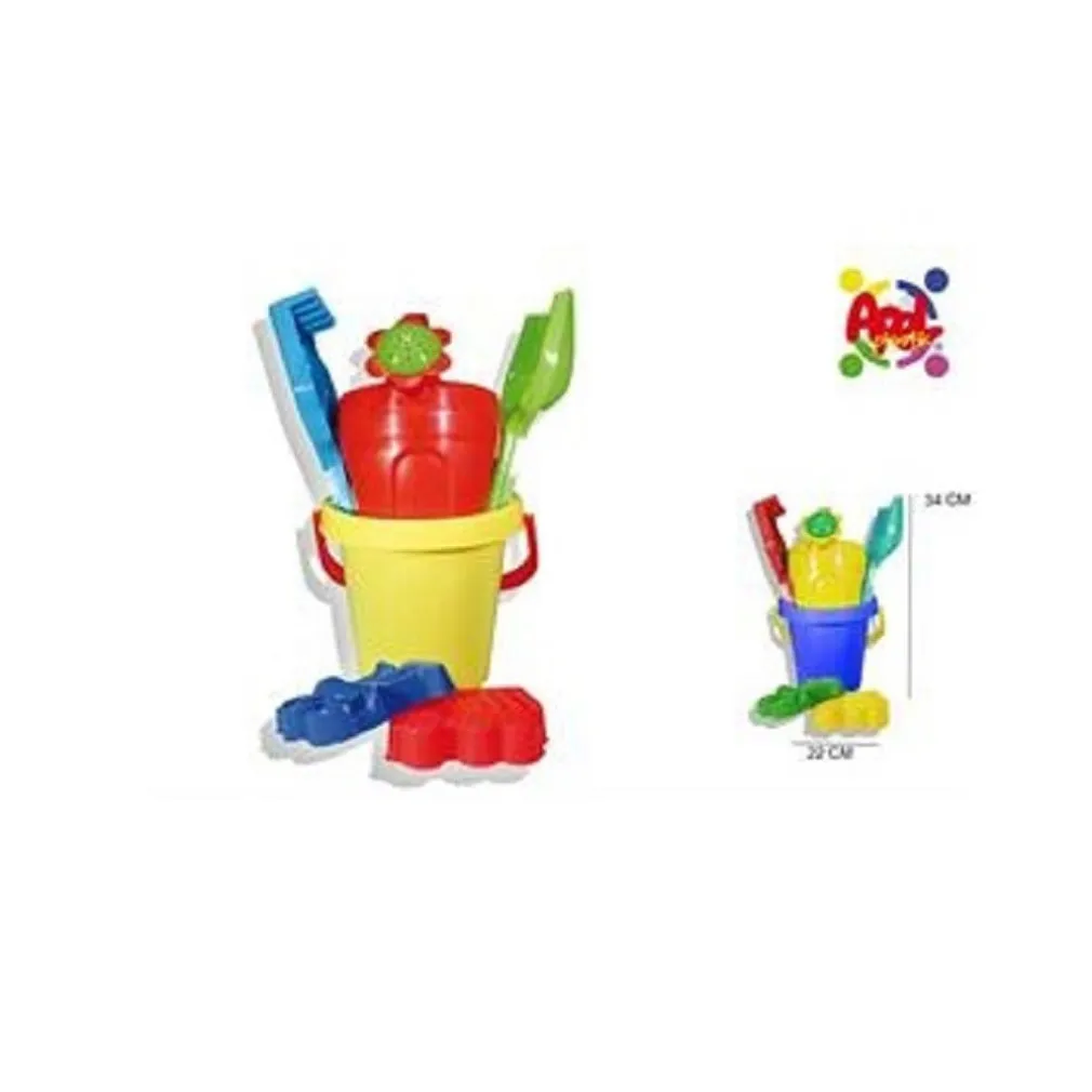 - Quali sono le dimensioni del secchiello? Il secchiello ha una dimensione di 34x22cm, ideale per contenere una buona quantità di sabbia e acqua.