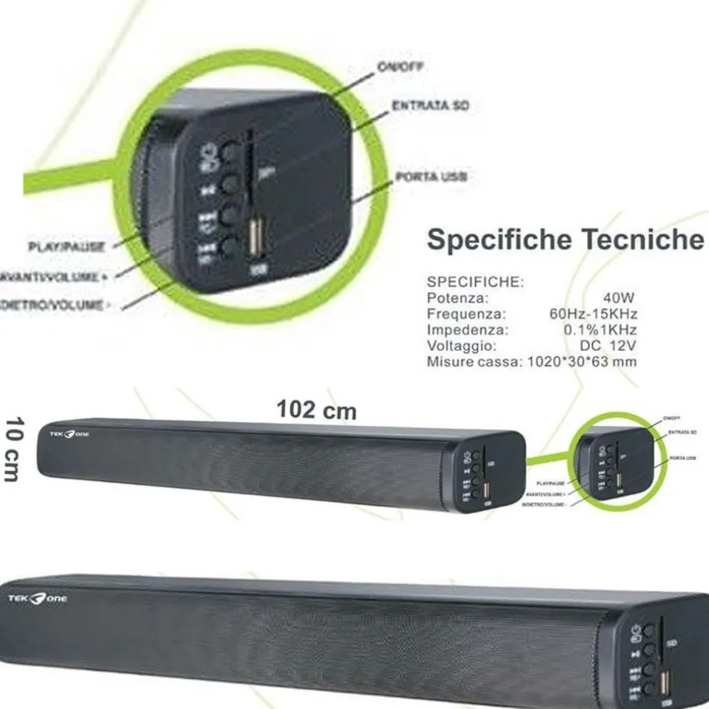 Barra sound per tv plasma lcd per amplificare il sistema audio del vostro televisore. Modello dotato i presa usb e ingresso slot card tf oltre alla funzione bluetooth per collegarla a un dispositivo bluetooth come smartphone e ascoltare audio dal vostro smartphone comodamente con casse di qualità superiori.