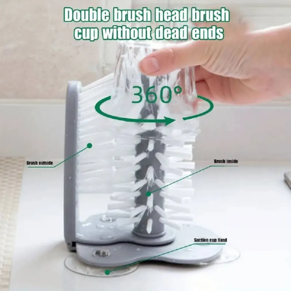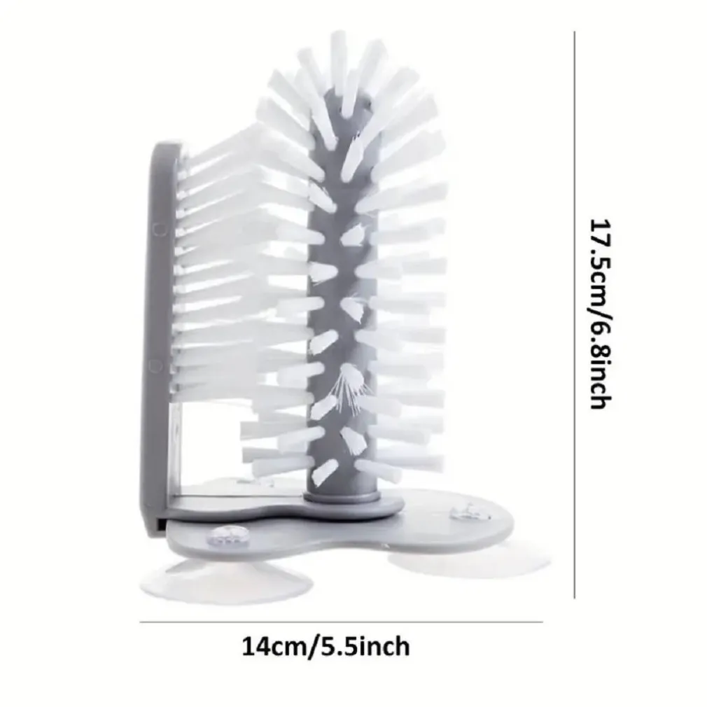 Posiziona la base di aspirazione sul fondo del tuo lavello. Bagna la spazzola con acqua calda, applica il detersivo e inizia a pulire inserendo l’oggetto tra le setole. La forma ergonomica permette una presa sicura e un’azione di pulizia efficace per bottiglie, bicchieri, e molto altro.