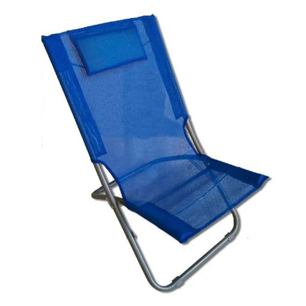 Spiaggina con Cuscino per Testiera Blu Textilene 57x47x95 cm – Pieghevole e Portatile