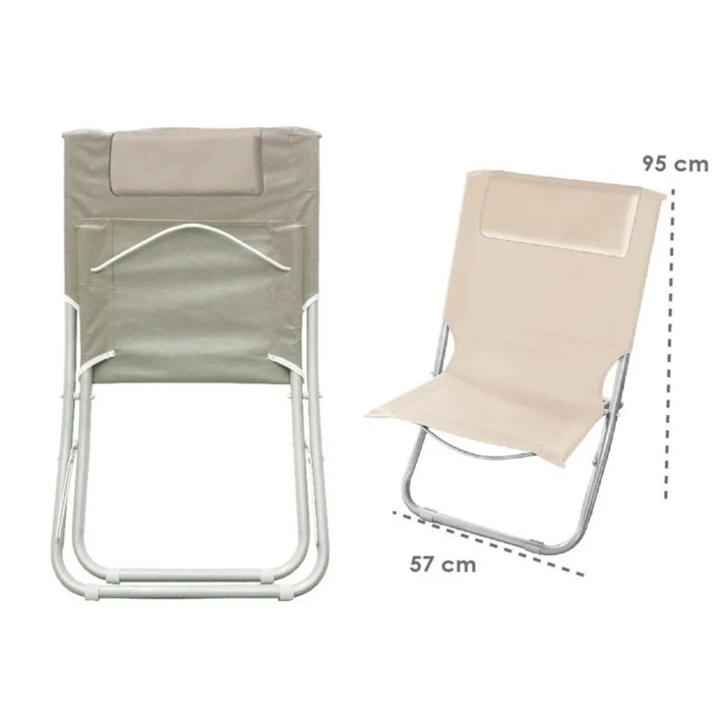 Spiaggina con Cuscino per Testiera Crema 57x47x95 cm – Pieghevole e Portatile