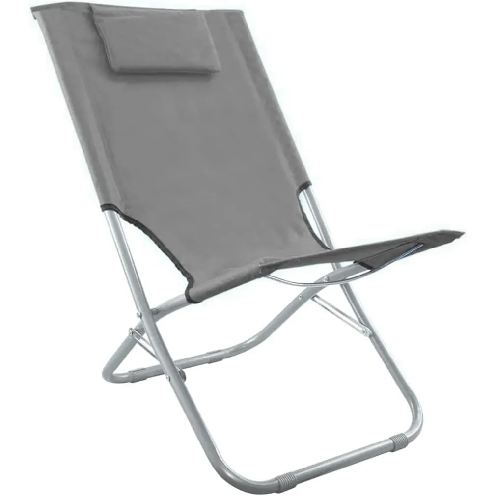 Spiaggina con Cuscino per Testiera Grigio 57x47x95 cm – Pieghevole e Portatile