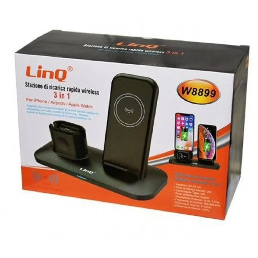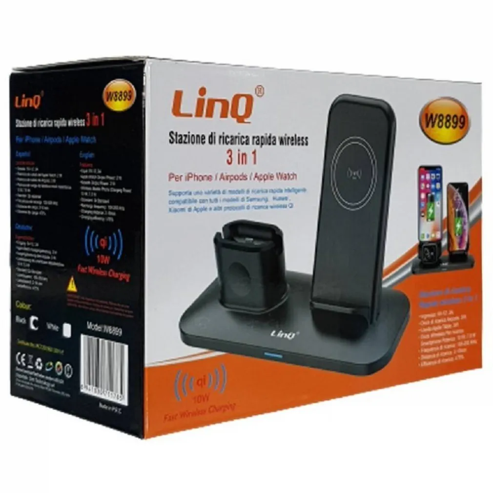 La stazione di ricarica che ci vuole per i tuoi dispositivi apple, ideale per gli usi quotidiani, questa stazione di ricarica della marca linq è una soluzione 3 in 1 che ti permette di ricaricare i dispositivi apple più diffusi. Infatti integra: una base a induzione qi da 10w per ricaricare l’iphone oppure altri smartphone compatibili con la ricarica rapida qi; un connettore lightning che eroga una potenza di 3w e permette di alimentare gli airpods; un caricatore magnetico da 2w per l’apple watch. Il tutto, in un design elegante e minimal, che si adatta a qualsiasi interno ed ambiente.