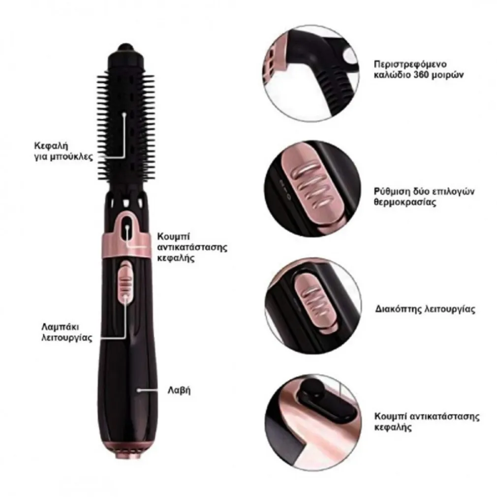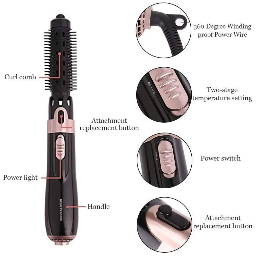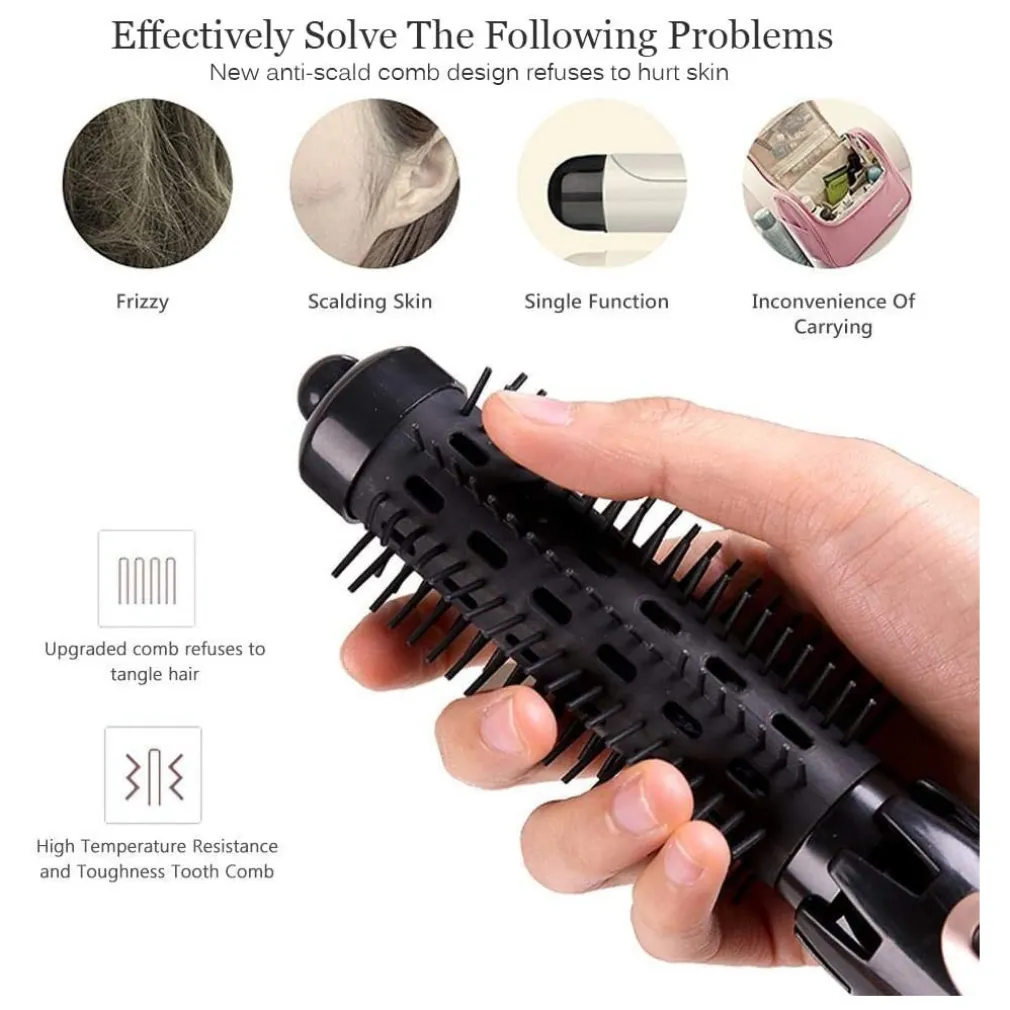 Un gadget versatile per la cura dei capelli per dargli lo stile che scegli. Dispone di 4 accessori per diverse acconciature. Puoi asciugarlo, raddrizzarlo e creare bellissimi ricci. Basta spazzolare i capelli come con qualsiasi spazzola per capelli. Con 2 opzioni di temperatura per adattarsi a ogni tipo di capello. Ha un cavo girevole a 360 gradi per un uso più facile. Assistenza professionale a casa tua! L’interruttore push-pull aggiornato rende le operazioni più convenienti. L’aerografo a caldo è progettato con un perno in nylon e setole trapuntate, che impediscono ai capelli di aggrovigliarsi. Adatto a tutti i tipi di capelli. Si riscalda in 30 secondi.
