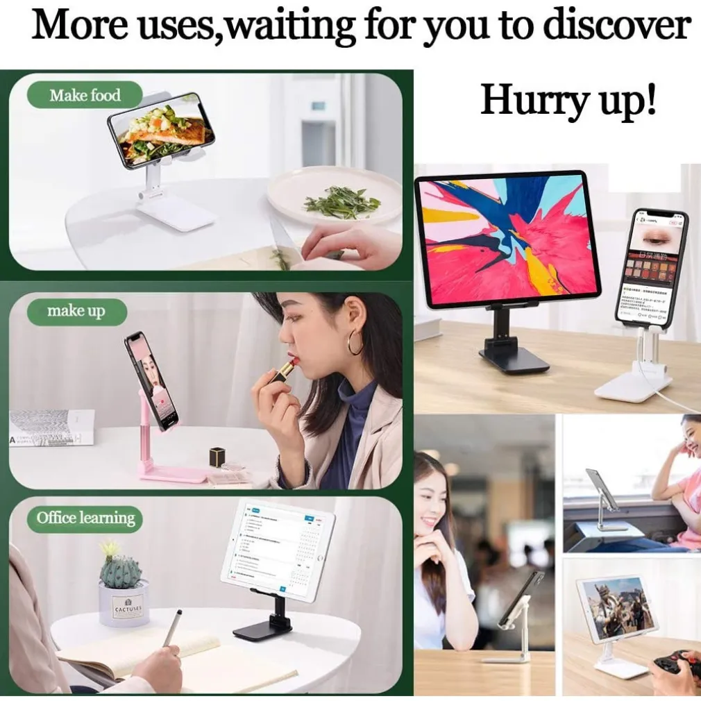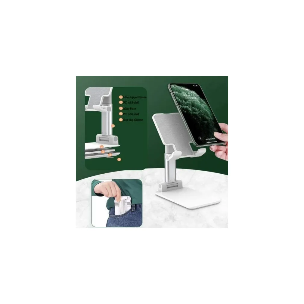 Solido supporto pieghevole per cellulari o tablet. Supporto da ufficio per smartphone e tablet, completamente regolabile. È particolarmente robusto, con un’ampia suola che è dotata di cuscinetti in silicone, che conferiscono la necessaria stabilità richiesta.