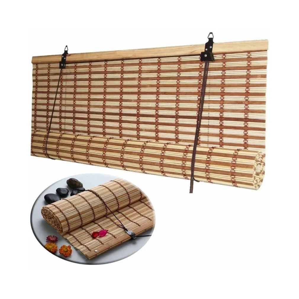 - Tapparella di listelli di midollino modello Africa con corda per un facile arrotolamento e supporto in legno con ganci in metallo per un facile montaggio.