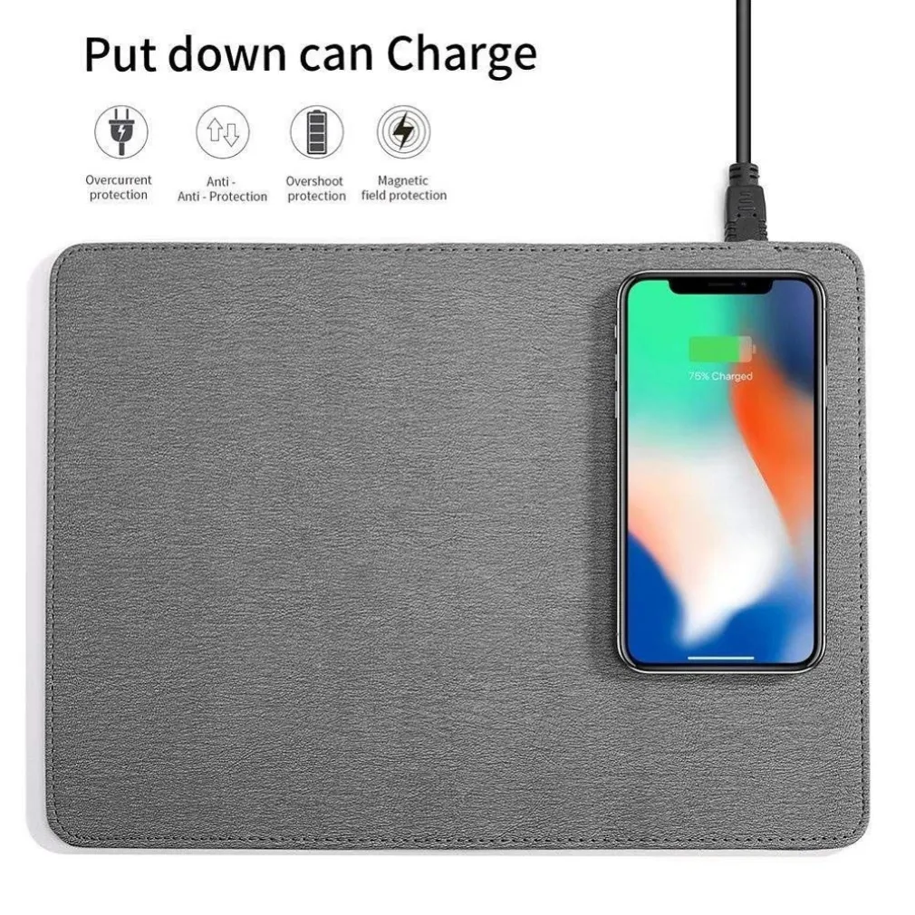 Tappetino per mouse grande e ricaricabile per spostare il mouse e caricare in modalità wireless i dispositivi che offrono questa funzione. Offre la massima precisione e comfort in ogni tuo movimento. Allo stesso tempo è un efficiente caricabatterie wireless per la casa o l’ufficio. Fornisce supporto per la ricarica rapida da 10 W per telefoni cellulari e dispositivi che supportano la ricarica wireless. Basta posizionare il telefono sopra e si carica senza fili. Ideale per condizioni di lavoro stressanti e riunioni.