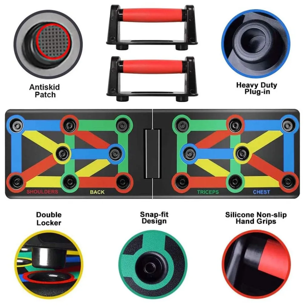 - 1x Push-up Board (con due maniglie ergonomiche)