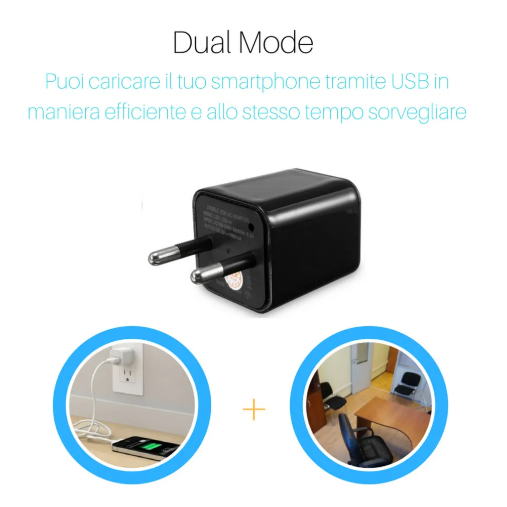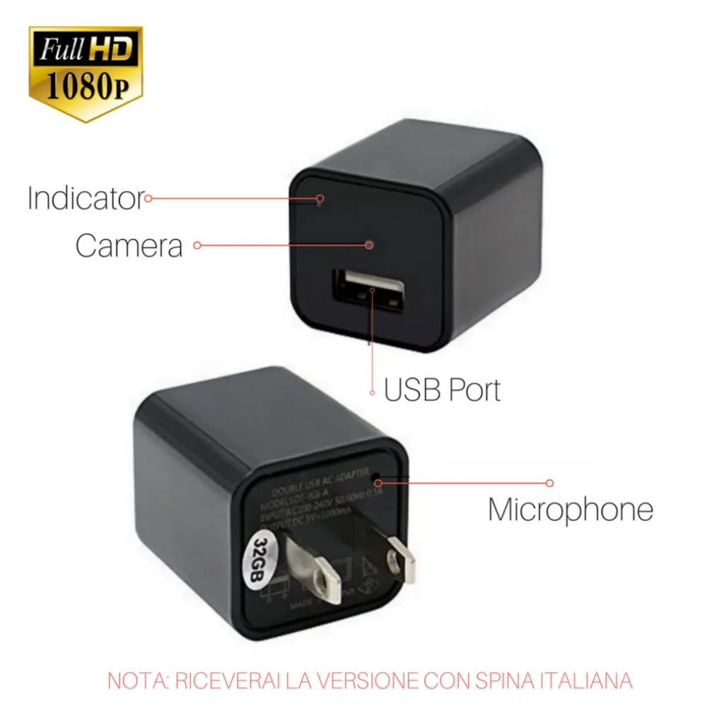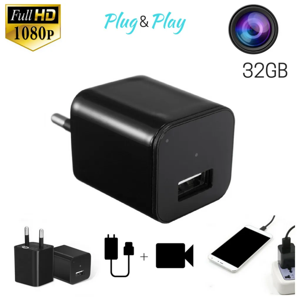 Spy Cam USB adattatore corrente spycam mini micro telecamera nascosta videosorveglianza motion detection sensore di movimento