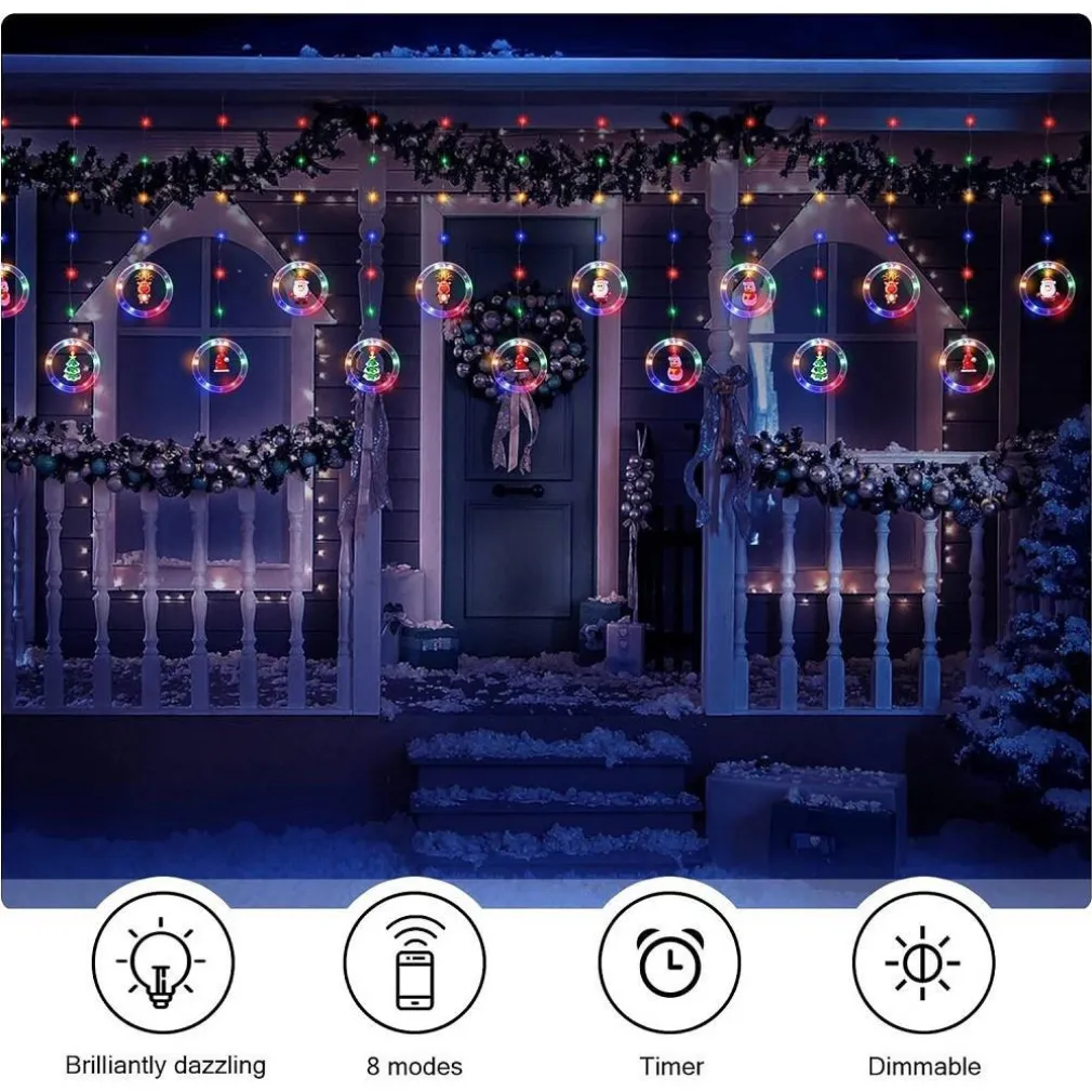 Tenda Luminosa con Statuetta di Natale, Catena di Luce 8 Modalità, Luci Natalizie per Finestre
