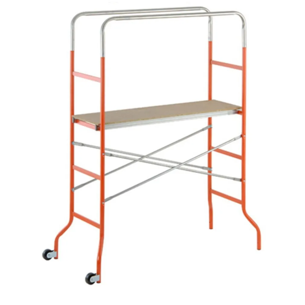 - La confezione include il trabattello in acciaio, il pianale in legno di Pino Radiata, i tiranti di sostegno, e il kit di montaggio per le ruote.