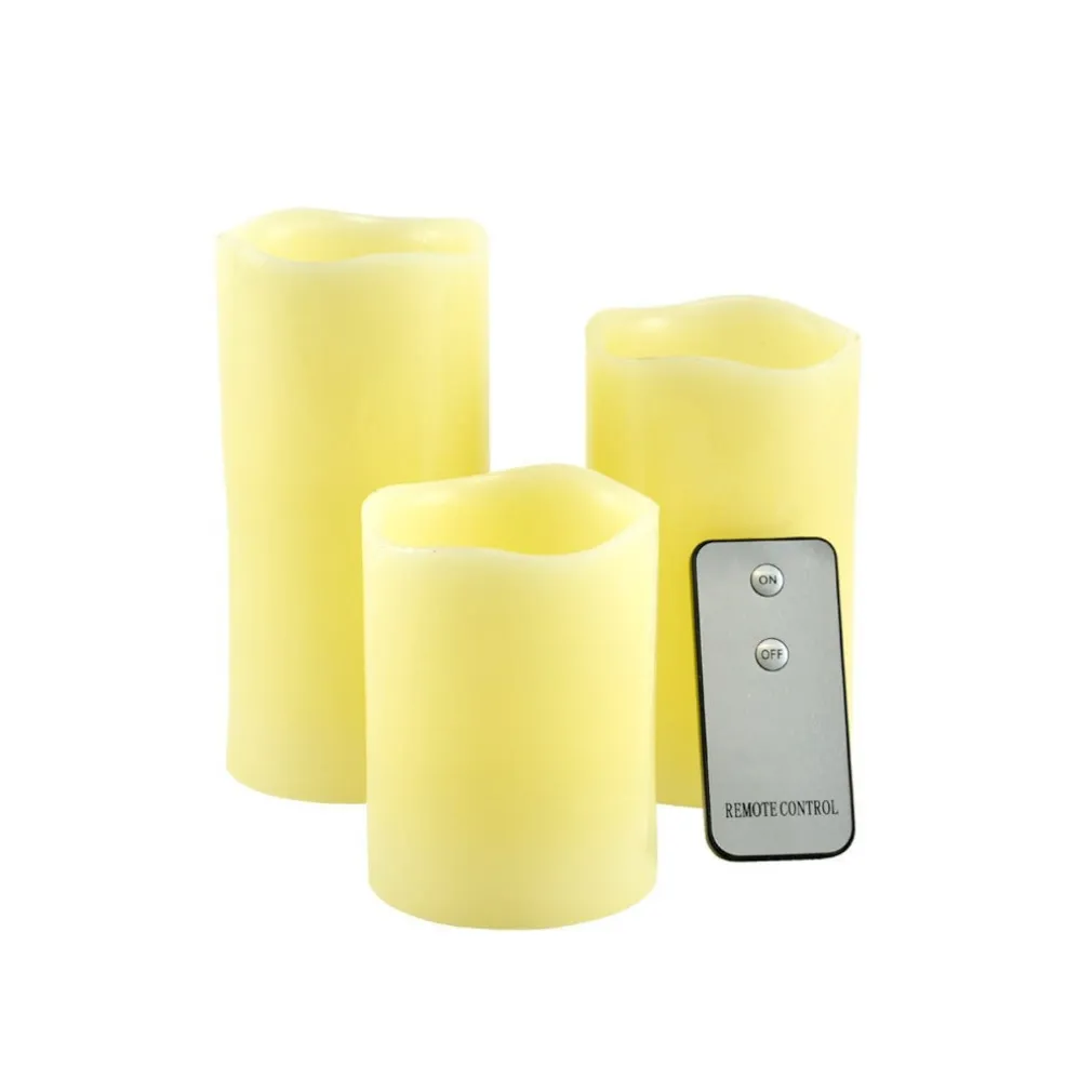 Questo set di 3 candele a led realizzato in vera cera imita perfettamente l’effetto di una candele con fiamma reale e crea un’atmosfera accogliente nella vostra casa. l’ambiente è tuttavia più sicuro con le candele accese, soprattutto per i più piccoli che hanno paura del buio. le candele a led sono alimentate a batteria. grazie al telecomando incluso puoi facilmente attivarle o disattivarle.