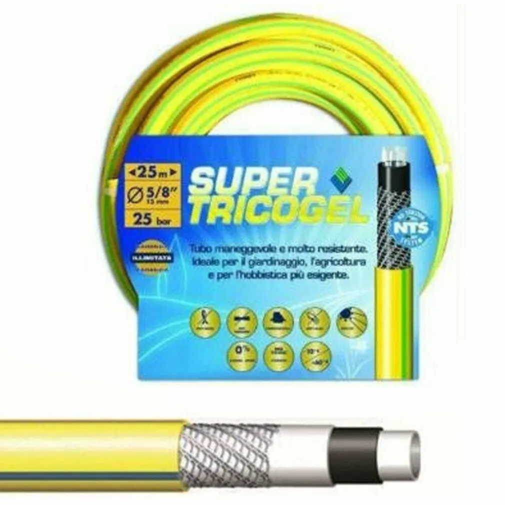 Realizzato interamente in PVC a 5 strati super resistente multistrato a tecnologia NTS con sistema anti torsione ed antipiega e anti alga a rinforzo elicoidale capace di sopportare una pressione di ben 25 bar, perfetto per l’utilizzo quotidiano nei tuoi spazi esterni. Spessore 5/8 con un diametro di 13mm e una lunghezza di ben 25mt che vi lascerà massima libertà di movimento durante l’utilizzo. Il tubo da giardino è perfetto per la pulizia del terrazzo, per l’irrigazione di piante da giardino ecc..