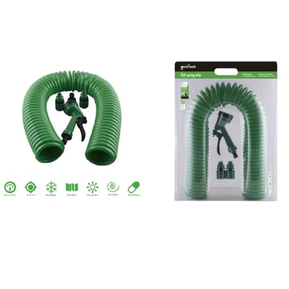 Cosa rende unico questo tubo da giardino a spirale? Il nostro tubo si distingue per la sua spirale molla, che garantisce flessibilità e resistenza senza compromettere il flusso d’acqua.