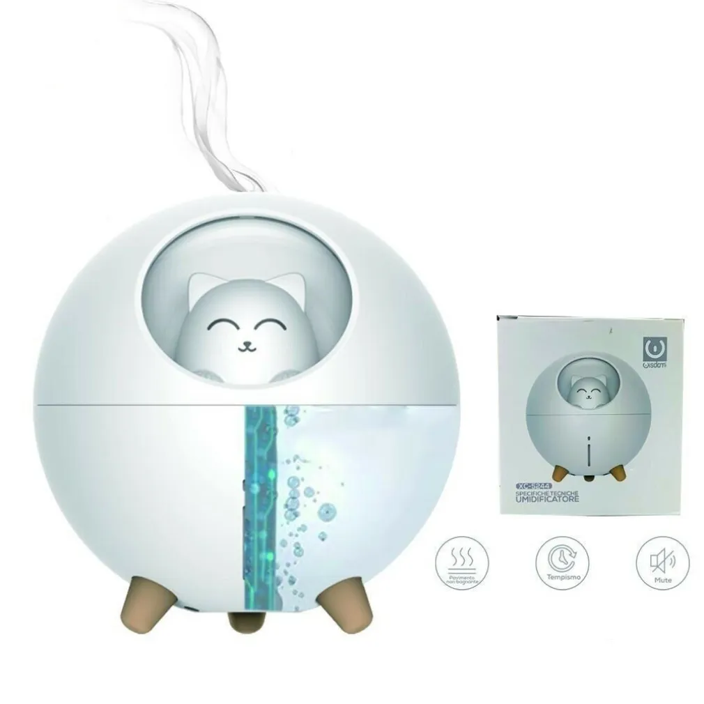 Aggiungi un po’ di dolcezza alla tua vita con l’UMIDIFICATORE ULTRASUONI LAMPADA GATTO LUCE AROMATERAPIA DIFFUSORE AROMI XC-5244.
