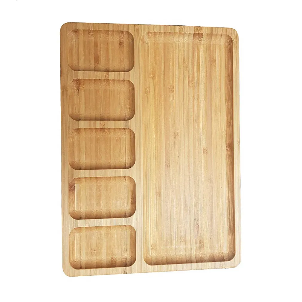 VASSOIO PIATTO CON DIVISIONI SCOMPARTI 6 COMPARTI IN BAMBU BAMBOO RETTANGOLARE 32X24 CM.