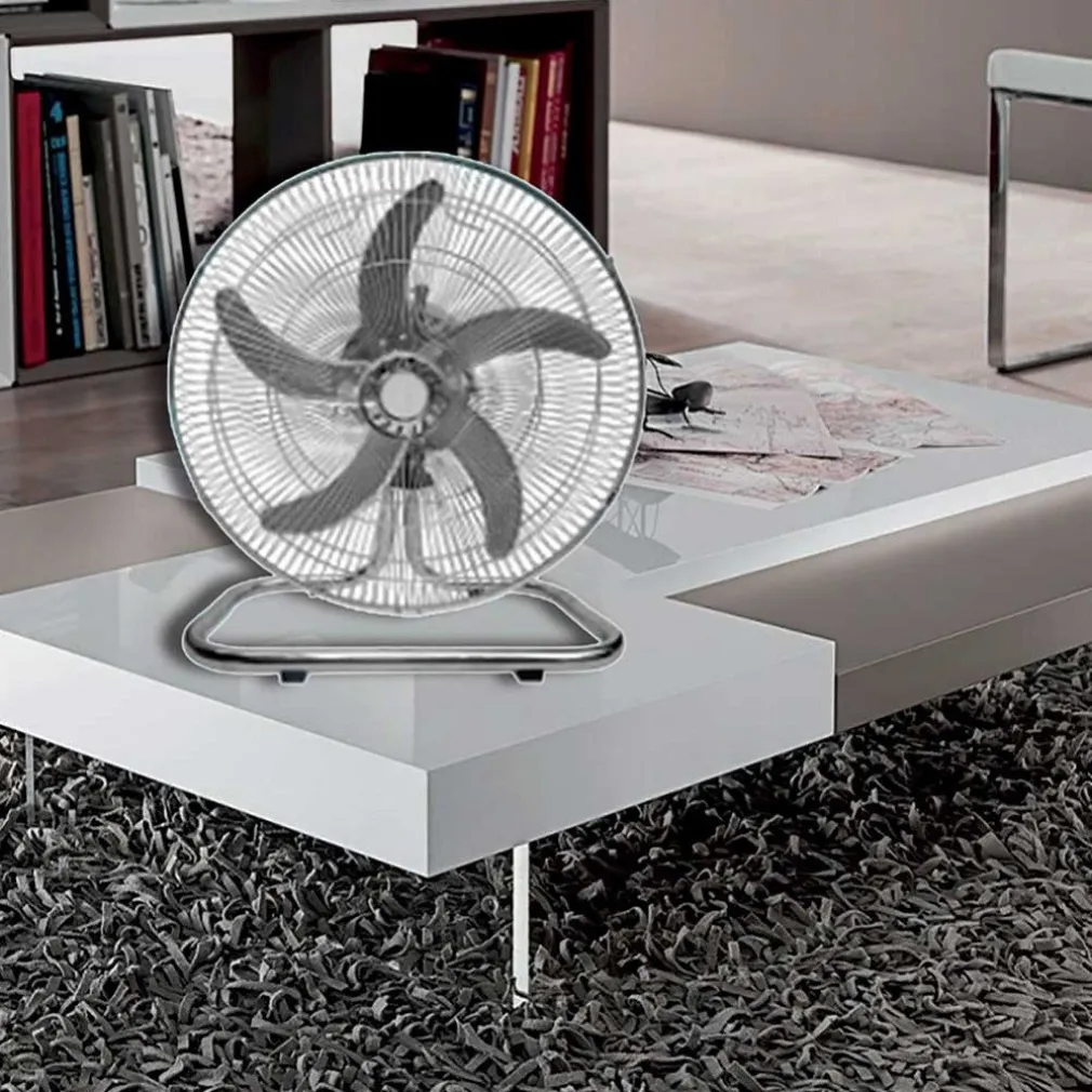 Questo incredibile ventilatore può trasformarsi in maniera facile e veloce in 3 ventilatori diversi. Ventilatore da terra a piantana con asta regolabile in altezza fino a 125 cm, ventilatore da parete grazie al pratico supporto da muro in acciaio ed infine in ventilatore da tavolo grazie alla comoda base in acciaio. Dotato di una potenza di ben 50 W con 3 velocità regolabili, 5 Pale in alluminio da 50 cm, ampia base da 50 cm in plastica dura anti ribaltamento, griglia di protezione in acciaio e oscillazione automatica per distribuire il getto d’aria in maniera omogenea in tutta la stanza. Realizzato interamente in alluminio acciaio e plastica dal design semplice e moderno questo ventilatore soddisferà ogni tua esigenza di spazio grazie alla sua funzione di 3 in 1.