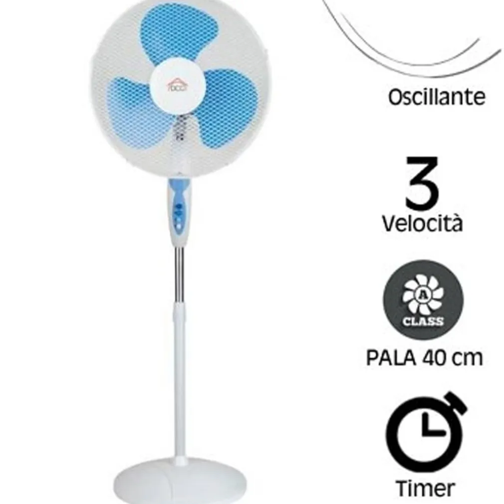 ventilatore elettronico a piantana, pala 40cm , 3 velocita’, oscillante, inclinazione regolabile, timer 60 min.