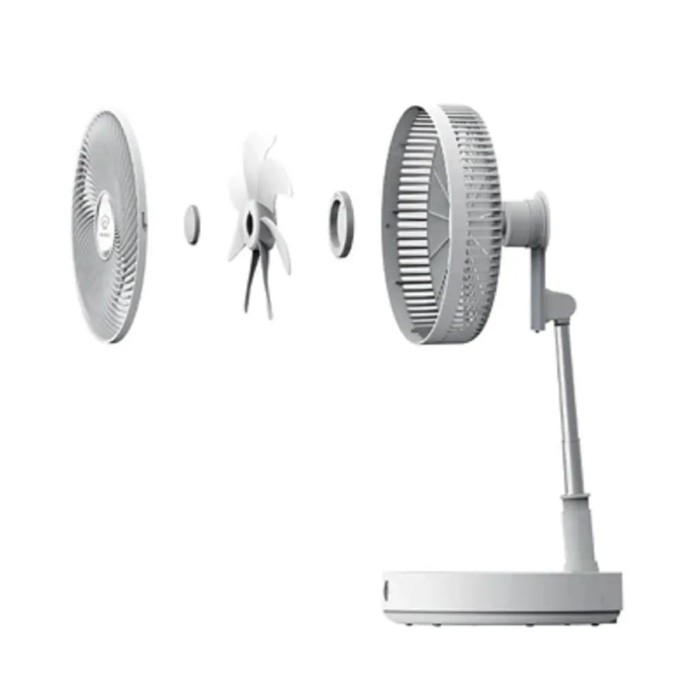 La ventola ha 8 velocità del vento, dotata di un motore silenzioso ad alta tecnologia, è molto silenziosa e non disturberà il tuo lavoro o riposo. Portatile & Pieghevole. È possibile regolare l’angolazione per ottenere il massimo comfort e regolare meglio il ricircolo dell’aria (staffa della ventola 0-90°; può ruotare di 180 gradi). Il design pieghevole può aiutarti a risparmiare spazio quando non è in uso. Oscillazione automatica di 100° a sinistra e a destra, questo aiuta a far circolare l’aria in grandi aree in modo molto più efficiente e veloce rispetto ai tradizionali ventilatori domestici Smontaggio: ruotare il coperchio anteriore in senso antiorario per rimuoverlo e pulire delicatamente le pale con un panno di cotone umido. Installazione: abbinare la posizione della scheda e ruotare il coperchio anteriore in senso orario. Prima di pulire il prodotto, assicurarsi che la ventilazione sia spenta e riavviarla dopo che si è asciugata. È dotato di un timer regolabile da un ora a 8 ore. Batteria Ricaricabile. Con una batteria da 7200 mAh, la ventola può funzionare per 3-20 ore quando è completamente carica.