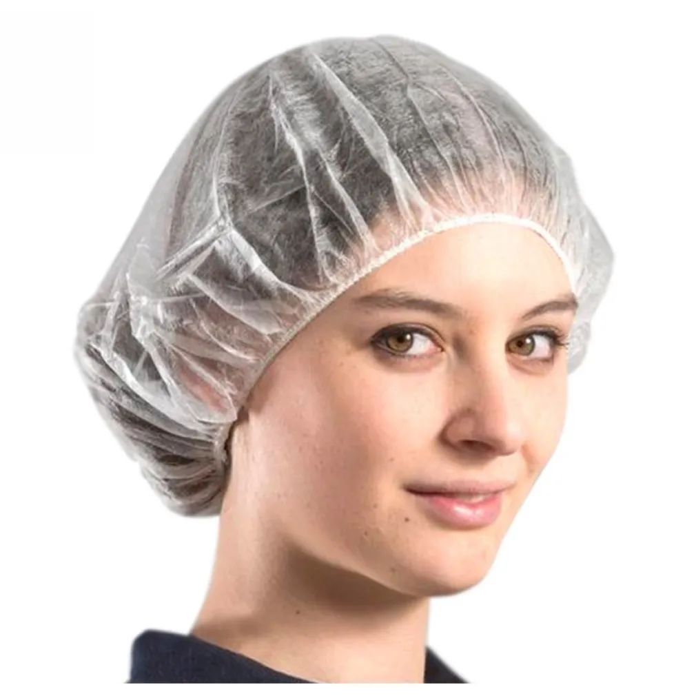 100 CUFFIE MONOUSO IN TNT PER CAPELLI CON ELASTICO BIANCHE CUFFIA CUFFIETTE