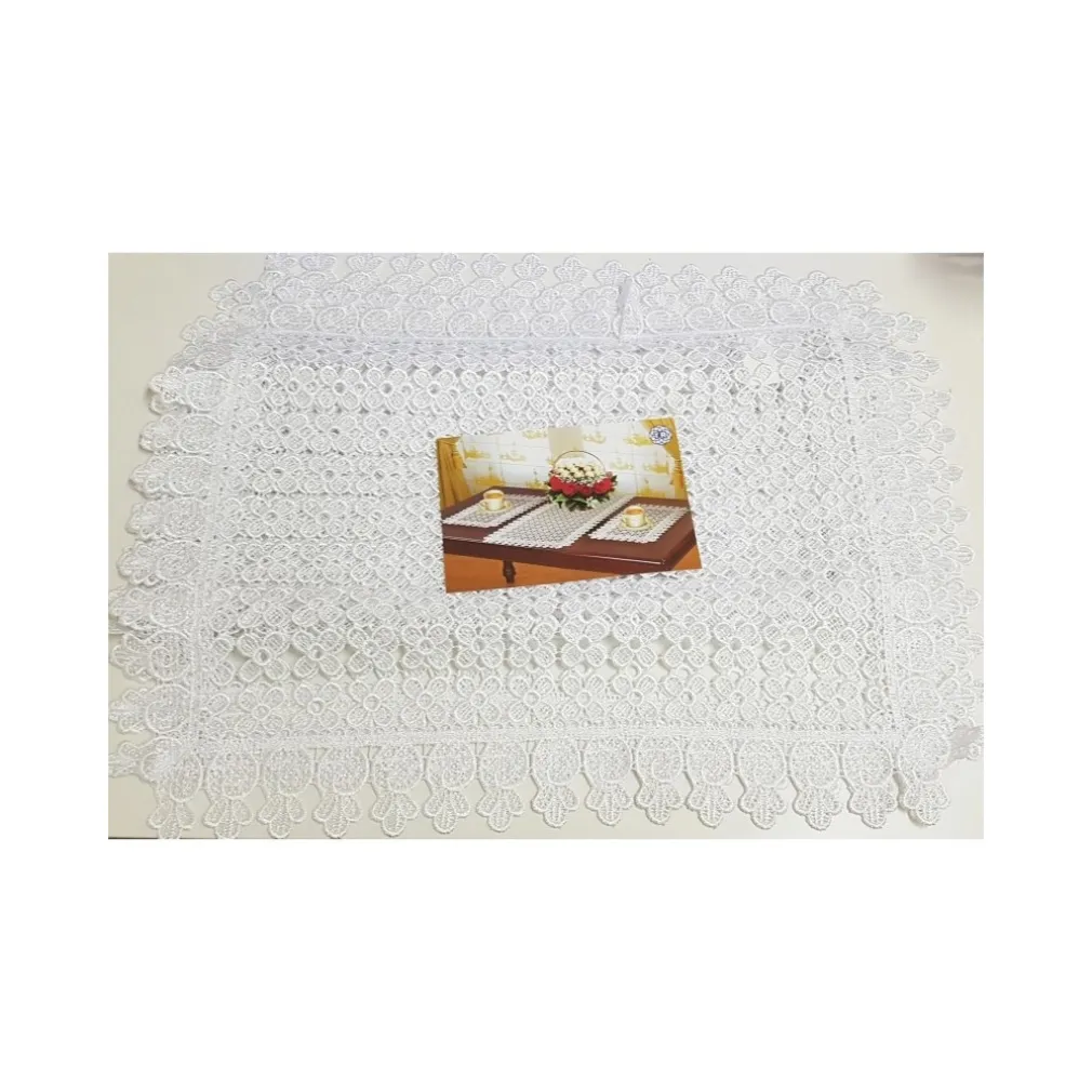 Eleva il tuo stile e rendi ogni pasto un’esperienza unica con il Set 3 Pezzi Centrini Centrotavola Bianco Merletto Fiori Runner Tessuto.
