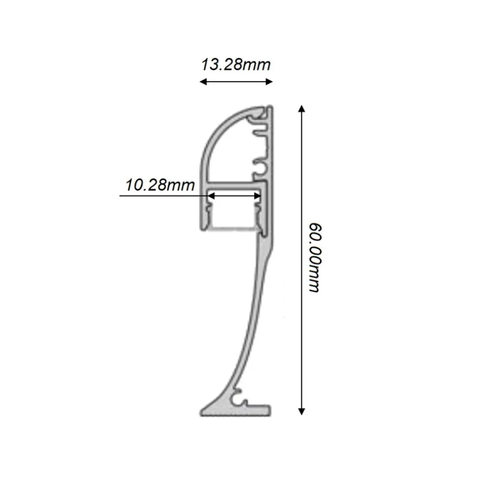 - Dimensioni esterne: 60 x 13.82 x 2000 mm