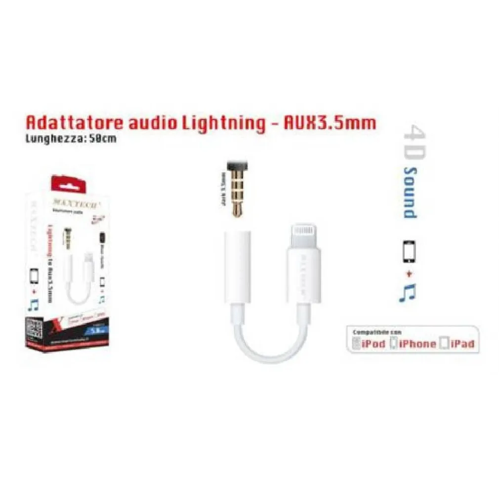 Adattatore Audio Lightning a Jack Aux 3,5mm per iPod iPhone iPad Bluetooth AD-IP01
