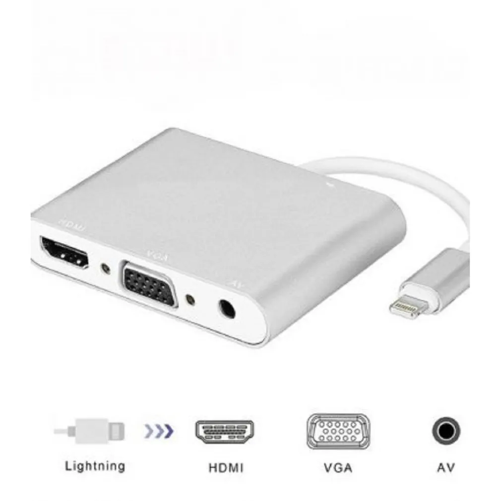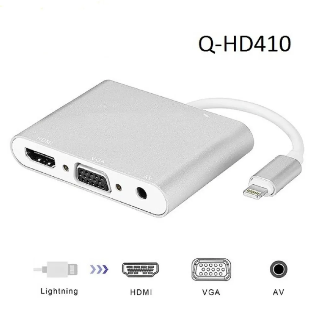 Adattatore display da Lightning a doppio HDMI + VGA + ANDOWL Q-HD410 da 3,5 mm. Collega i tuoi dispositivi a uno schermo più grande a 4K 30Hz o 2K 60Hz. L’adattatore supporta la trasmissione di ciò che viene visualizzato sullo schermo del dispositivo a TV, display, proiettore o altro display compatibile dotato di HDMI. Guarda tutto sul grande schermo! Usa questo adattatore AV digitale per collegare il tuo iPhone, iPad, iPod a monitor HDTV o VGA con cavo Lightning originale e jack audio da 3,5 mm. Facile da usare, basta plug and play. Compatibile con: supporto per adattatore da Lightning a HDMI iPhone 7/8/X/XR/XS/SE/11/12, iPad, iPod.