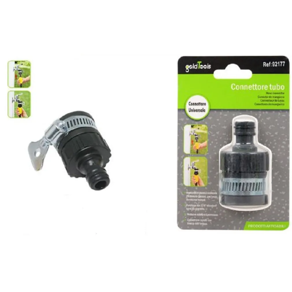 Adattatore per rubinetto senza filetto con diametro inferiore a Ø18 mm. Permette di collegare un rubinetto senza filettatura a un tubo o un sistema di conduzione dell’acqua con connettori rapidi. Utile in terrazze, giardini, terrazze e dove è presente un sistema di conduzione dell’acqua per tubi, per irrigazione o pulizia. I connettori rapidi rendono semplice ed efficace il collegamento e lo scollegamento di tubi, lance e pistole ad acqua. Realizzato in polipropilene.
