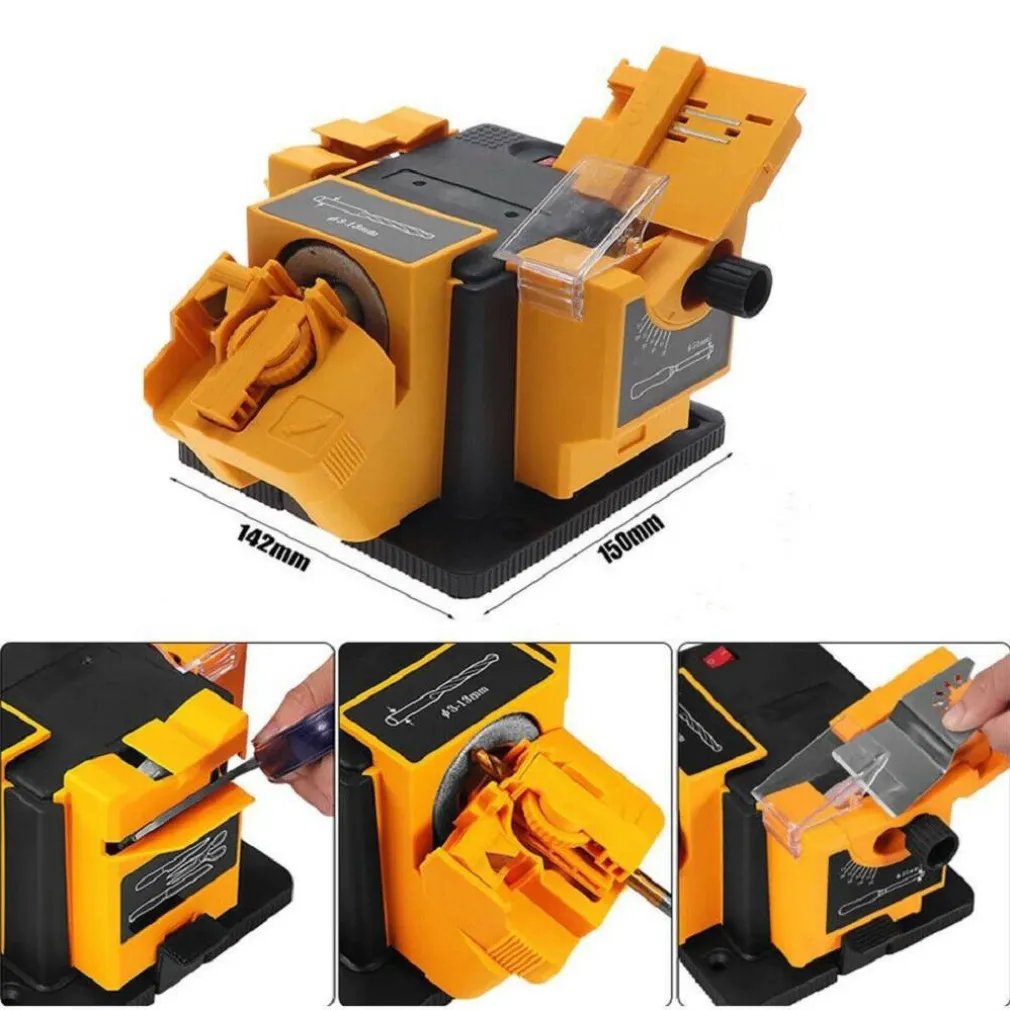 Affilatrice multiuso per l’affilatura dei coltelli, forbici, scalpelli, punte trapano ecc. Il prodotto è ideale per l’uso nel settore Fai da te, artigianale o in piccole officine. Il prodotto fornito con una mola diamantata già montata, e tre moduli facili da sostituire, secondo la lama da affilare, il modulo corrispondente permette l’assestamento del angolo ottimale e un montaggio sicuro garantendo i risultati ottimali.