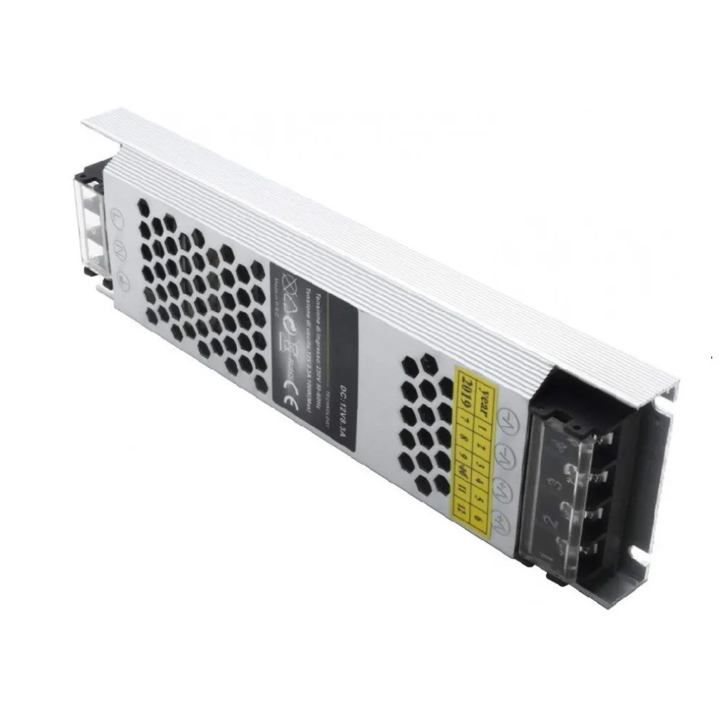 Alimentatore stabilizzato in metallo forato dal design slim con potenza massima di 100W. Dotato di un ingresso a 230V con doppia uscita che consente di alimentare 2 dispositivi a 12V con amperaggio massimo di 8.3A. Ideale per alimentare tutti i dispositivi che necessitano di alimentazione a 12V. Adatto per impianti di videosorveglianza, telecamere, corpi illuminanti con tecnologia a LED. Grazie alle dimensioni ridotte è possibile nasconderlo facilmente in cassette di derivazione o appositi spazi predisposti. L’alimentatore ha un grado di protezione adatto per uso interno. La struttura è in metallo forato tipo gabbia per una migliore dissipazione del calore, non ha ventole per questo risulta completamente silenzioso. L’alimentatore è dotato di morsetti a vite per il collegamento dei fili con copri morsetti in plastica.