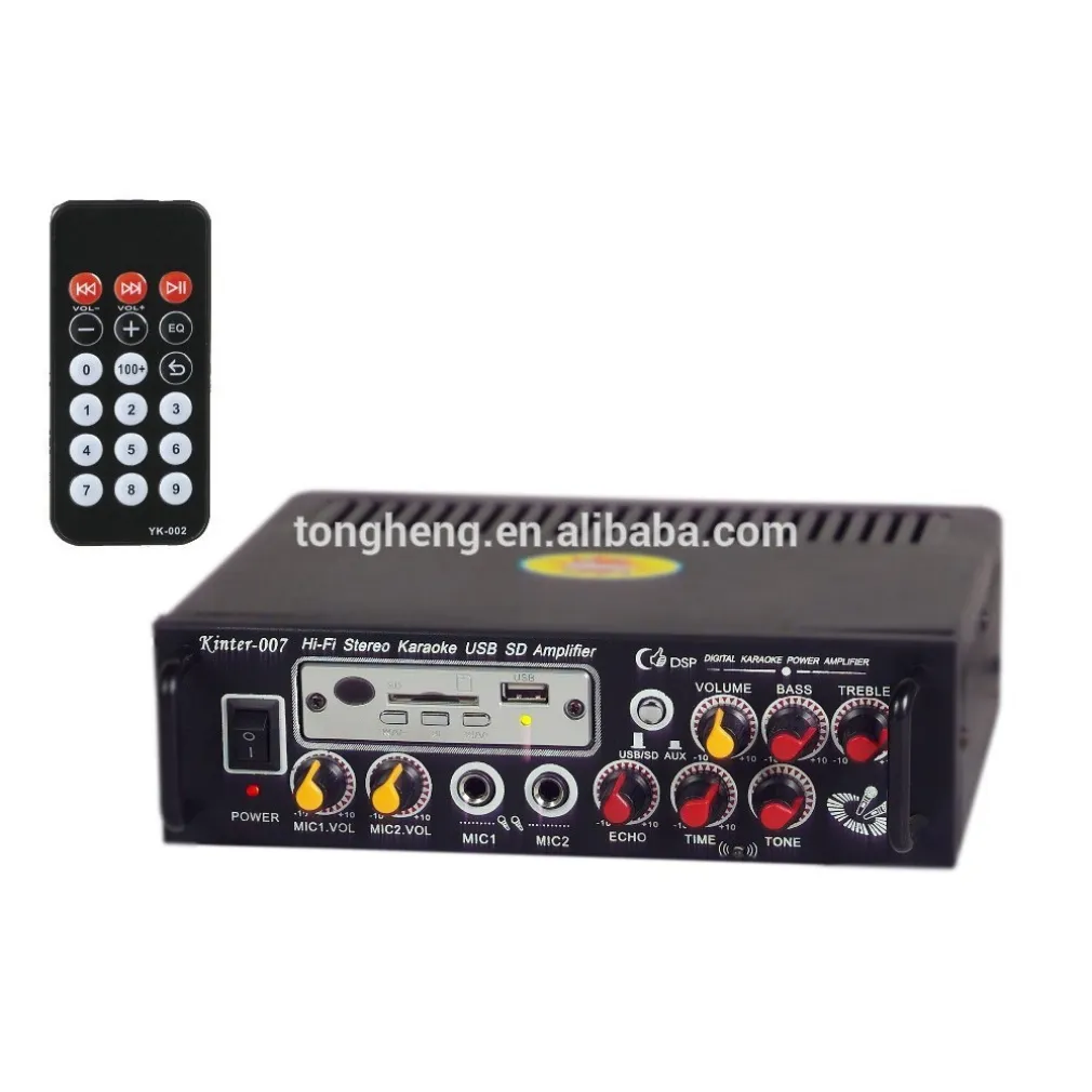 Dotato di un’ampia gamma di opzioni di connettività, questo amplificatore consente di riprodurre la vostra musica preferita da una varietà di fonti, inclusi dispositivi USB, schede SD e persino due ingressi MIC per le vostre performance vocali. Il display digitale integrato rende la navigazione tra le diverse opzioni di input un gioco da ragazzi.