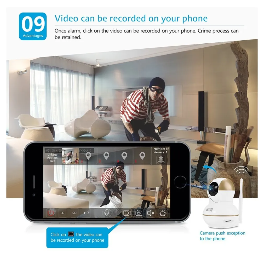 sorvegliato nella stanza superiore. Il Microfono è attivo anche sulla IP Cam, in modo che anche per chi si trova dall’altra parte ha la possibilità di comunicare con voi tramite audio, che il vostro smartphone riprodurrà.