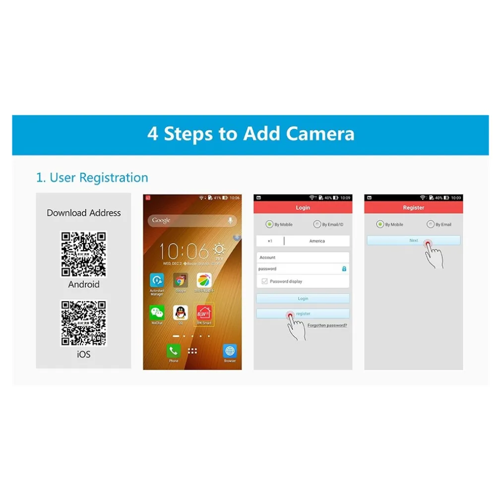 Tutti gli accessori inclusi nel Kit, sono programmati per la funzione senza fili (WiFi), tramite un semplicissimo collegamento Wireless alla Telecamera IP.Grazie a un’applicazione (YY2P2) da scaricare sul vostro Smartphone, avrete la possibilità di controllare in qualsiasi momento (anche via connessione 3G/4G) e da qualsiasi luogo, la vostra abitazione, il vostro ufficio, la stanza di vostro figlio, etc..