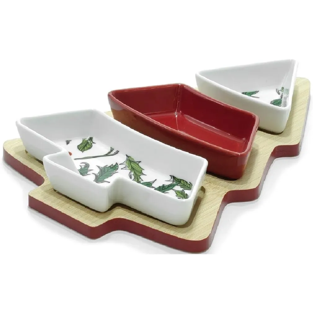 Scopri subito la strepitosa antipastiera a 3 scomparti in bianco e rosso con motivo agrifoglio a forma di albero di Natale, un accessorio unico che trasforma ogni occasione in un momento speciale. Perfetta per servire antipasti, snack, salse o finger food, questa antipastiera con 3 ciotole e base in legno è pensata per chi ama coniugare funzionalità ed eleganza. Non perdere l’occasione di avere in tavola un pezzo che unisce design moderno e atmosfera natalizia: guarda il prodotto e lasciati conquistare dal fascino del dettaglio!