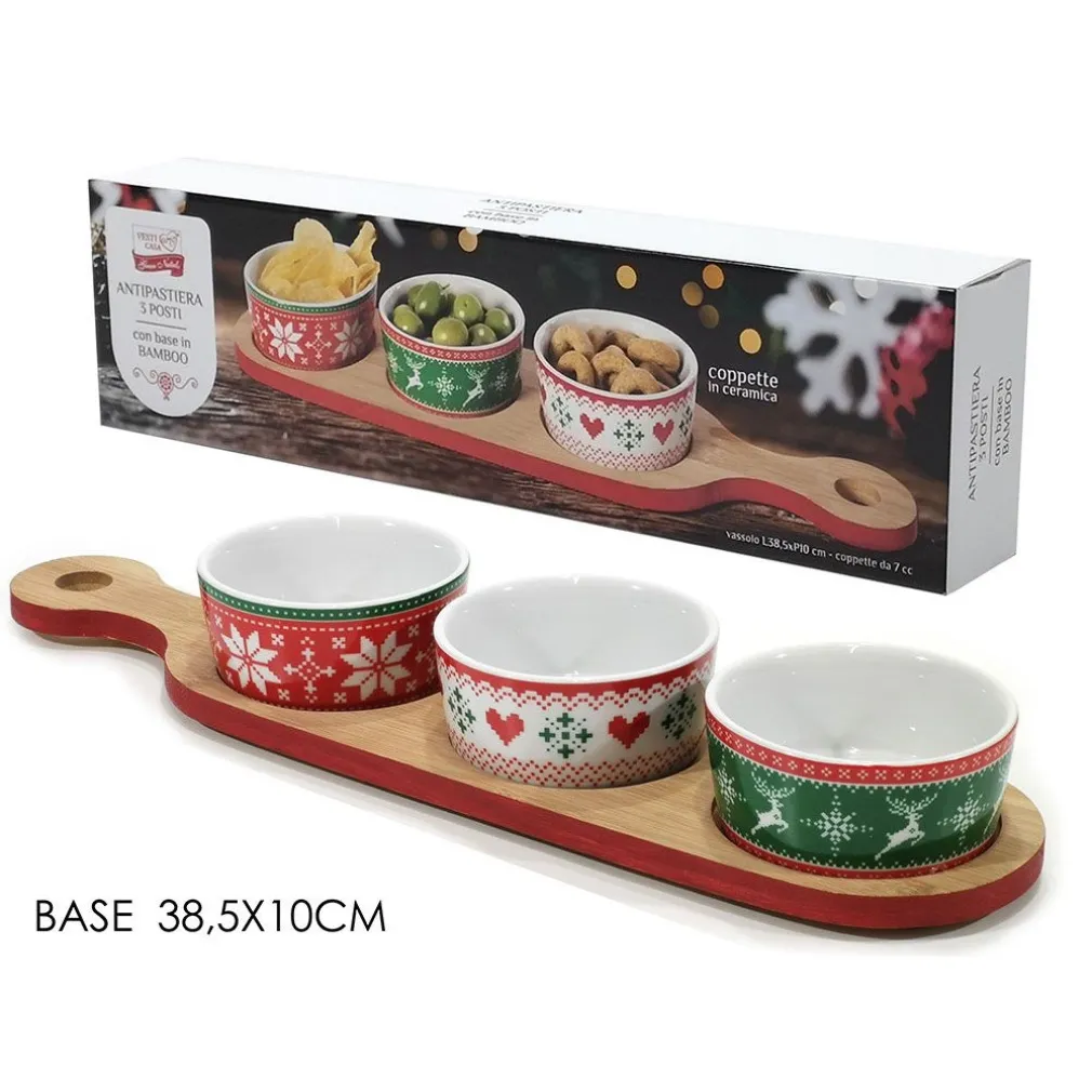 - Prodotto: Antipastiera con 3 coppette natalizie e base in bambù