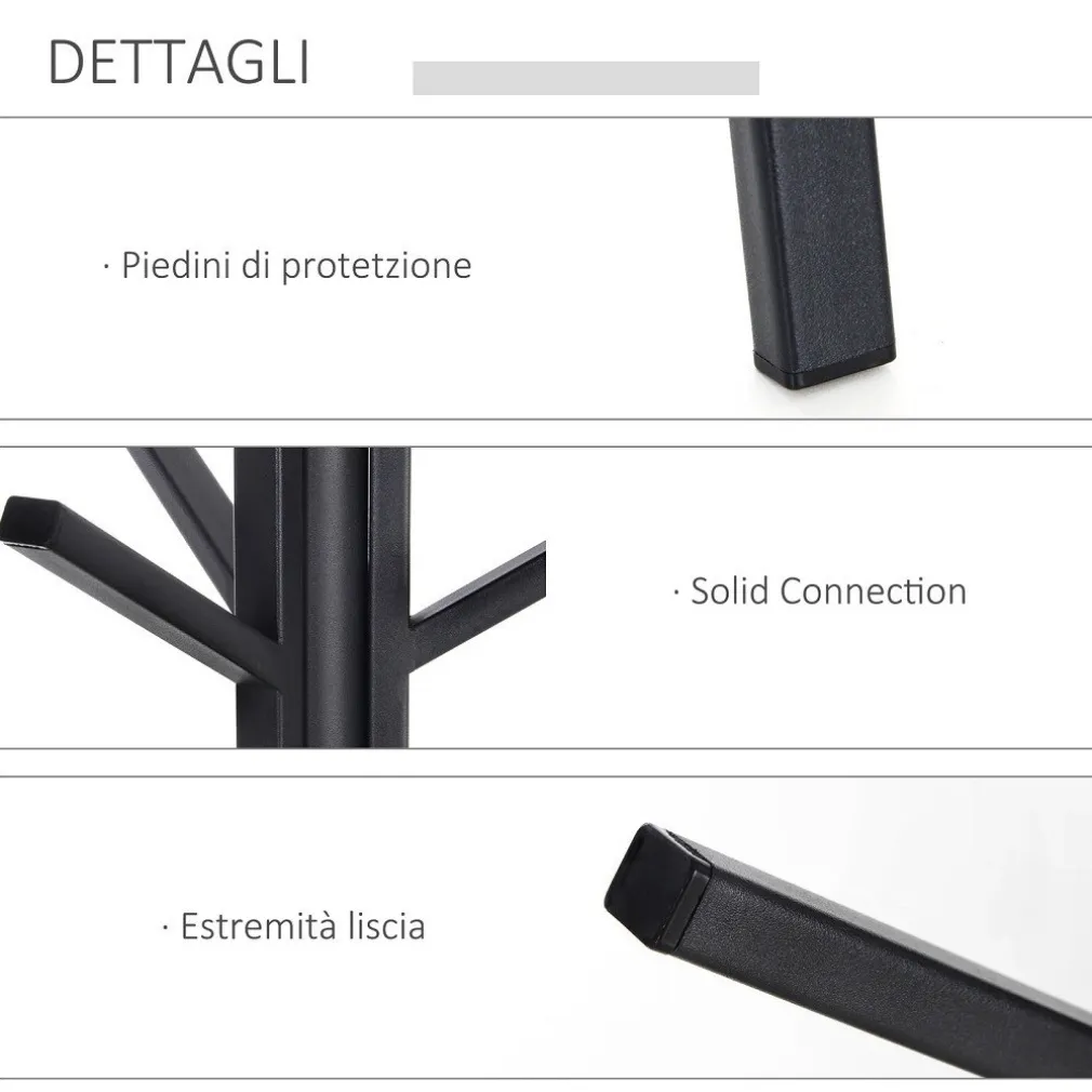 - 3 rami principali con 9 ganci per cappotti, borsette, sciarpe, giacche e altro.