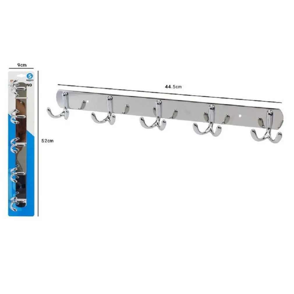 Massima Funzionalità: I 5 ganci permettono di appendere più asciugamani o altri accessori, ottimizzando lo spazio disponibile in bagno.