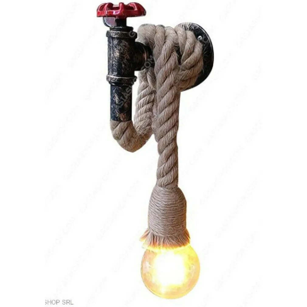 Innovativo applique da parete realizzato in ghisa e canapa a forma di rubinetto dallo stile industriale, vintage e country per dare un tocco in più all’arredamento della vostra casa. Ideale anche come decorazioni di bar, musei, alberghi, ristoranti e ovunque si desideri creare un’atmosfera antica. Potrete, inoltre, annodare la corda in vari modi per personalizzare il vostro applique.