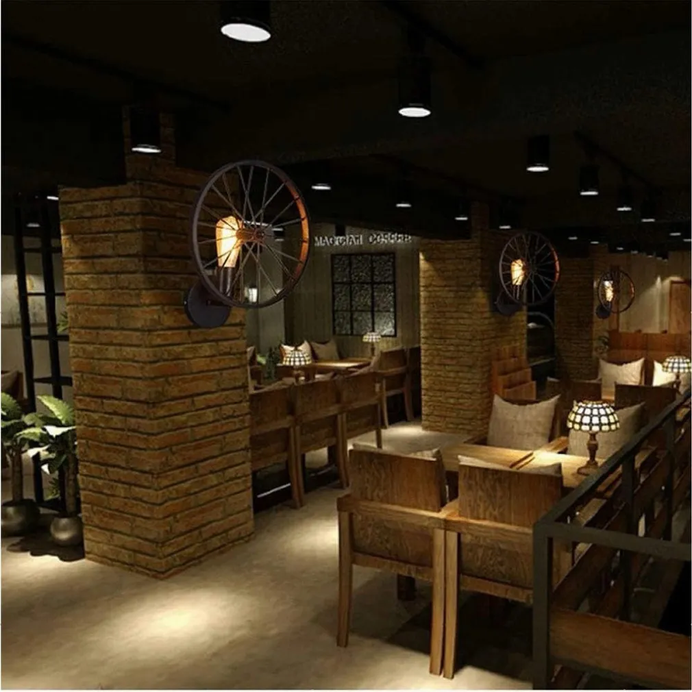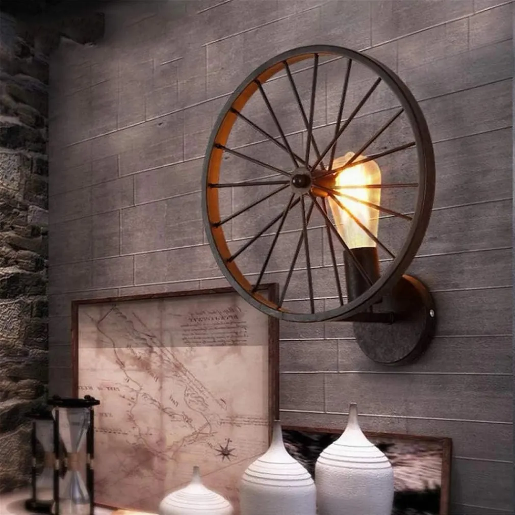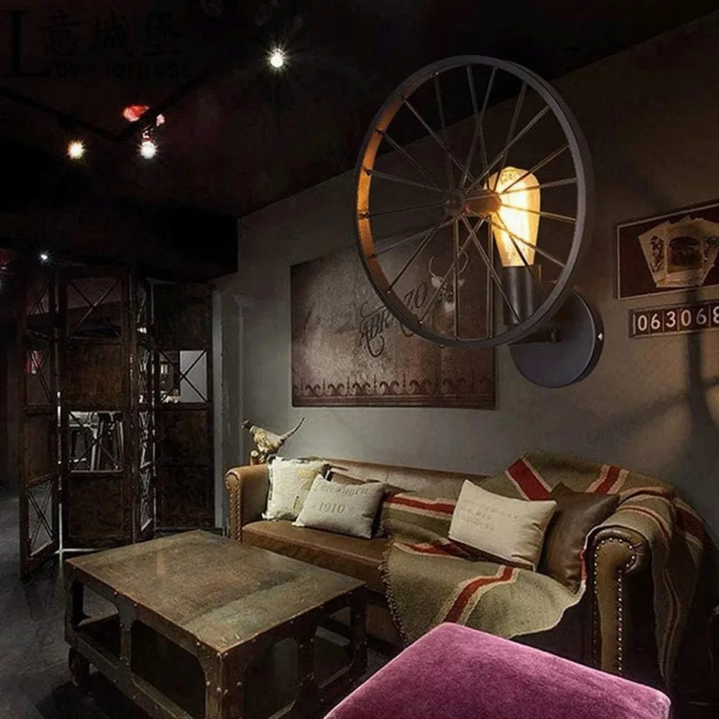 APPLIQUE A PARETE STILE VINTAGE LAMPADA FORMA DI RUOTA BICICLETTA NERO E27 AQ62