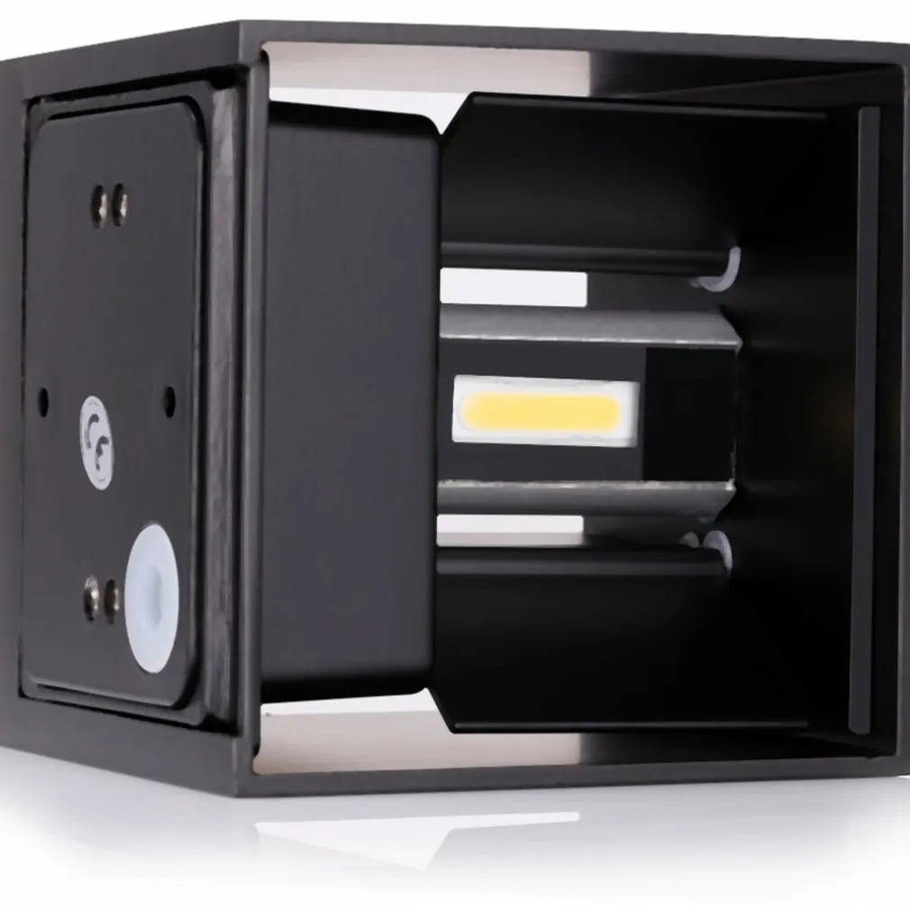 Applique da parete a led per ambienti interni ed esterni, certificato IP65, con struttura in metallo verniciato di nero satinato ad alte temperature, quindi adatto alle intemperie. Il design si presenta come un classico cubo, a cui può essere tolto l’involucro in modo da poter regolare i fasci di luce emessi tramite le pratiche alette regolabili. Si può quindi decidere se avere un illuminazione ampia, ristretta, solo verso il basso, verso l’alto o da ambedue le parti (su e giù), in modo da rendere questa applique davvero duttile e suggestiva. Il consumo è di soli 10W, grazie ai led integrati di ultima generazione che garantiscono prestazioni elevate, bassi consumi e alta affidabilità nel tempo. Molto luminosa, infatti ha 1200 Lumen. Il collegamento è diretto alla rete 220V, infatti l’alimentatore è già incorporato all’interno del faretto up & down.