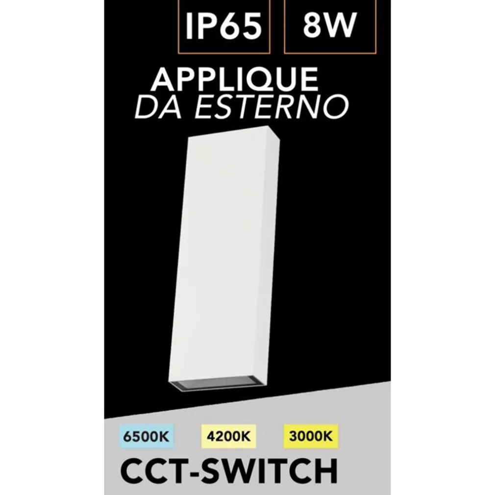 APPLIQUE DA ESTERNO RETTANGOLARE A DOPPIA EMISSIONE DI LUCE 8W TECNOLOGIA CCT IP65 2750-3C