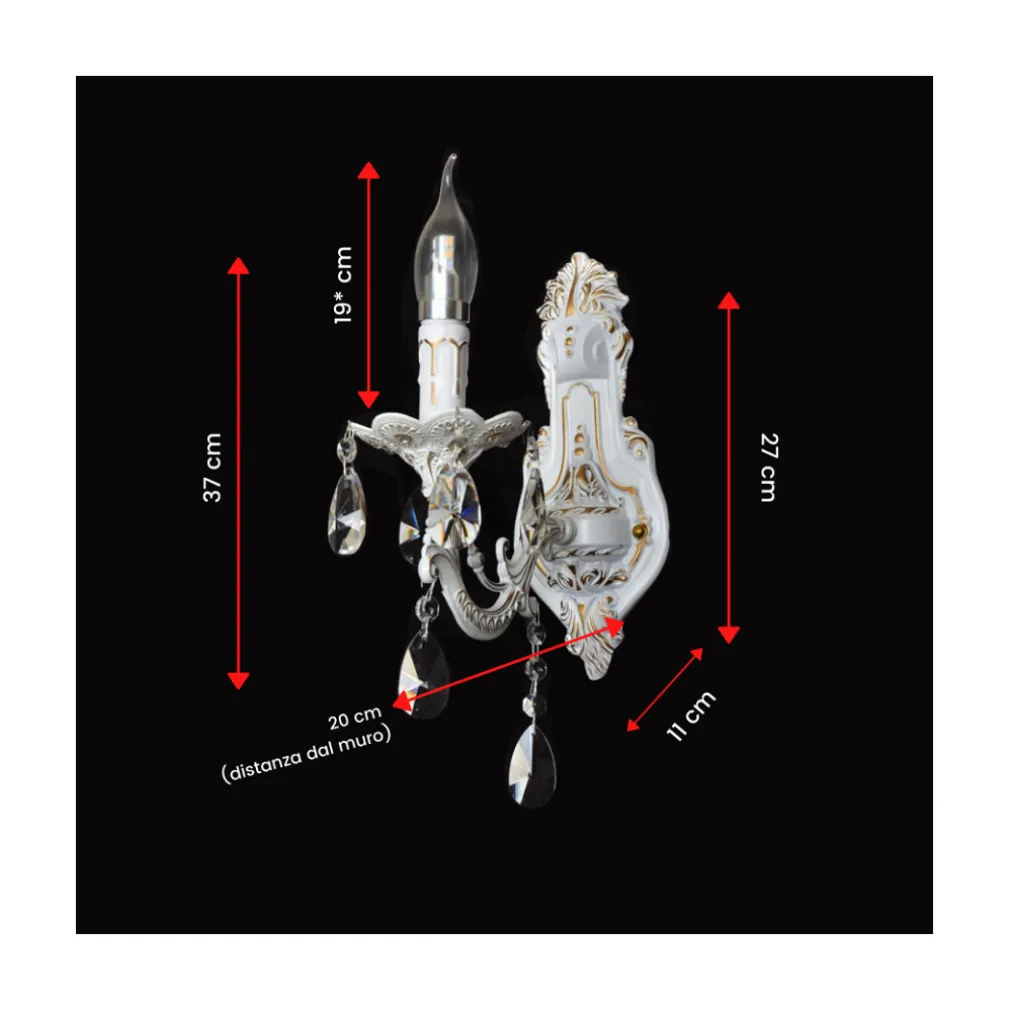 Applique da parete 1 braccio, attacco 1xE14 (lampadina non incluse), impreziosito da gocce pendenti vetro effetto cristallo. Crea un ambiente confortevole e classico con questa innovativa lampada da parete dal design vintage. Impreziosita da pendenti a forma di goccia in vetro effetto cristallo. I materiali utilizzati di alta qualità ne garantiscono una performance superiore e durata nel tempo. Le sue dimensioni la rendono facile da installare, semplice da utilizzare e facile da pulire. Questa lampada è adatta per camere da letto, salone, studio, corridoio, ecc.