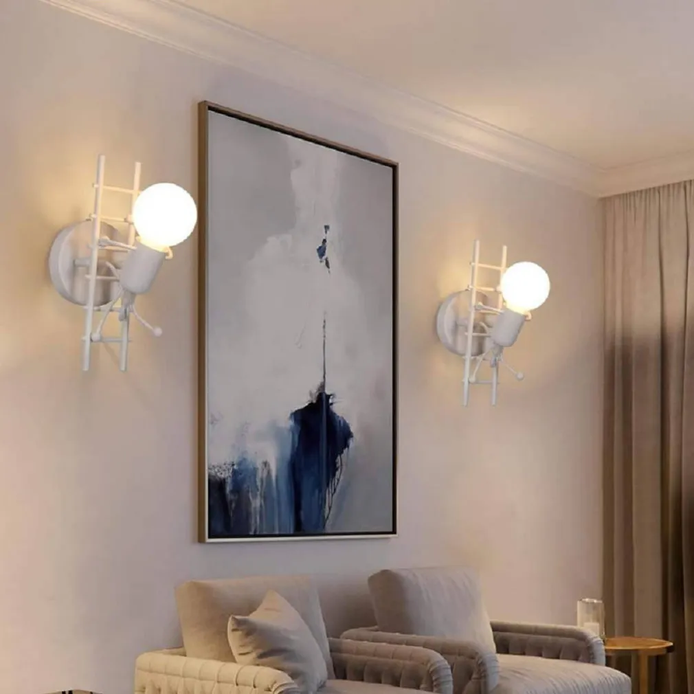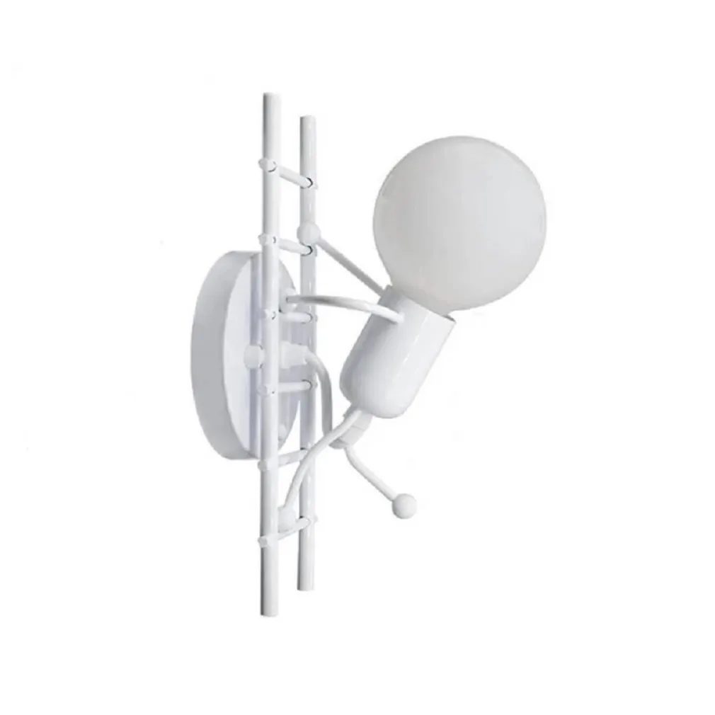 Applique da parete dal design di un omino in metallo con stile industriale. Adatta per ambienti interni da arredamento, come camere, camerette di bambini, corridoio, ecc. Adatta anche per l’uso in hotel, B&B, attività commerciali ed in tutti quei posti dove si vuole installare una lampada dal design stilizzato e moderno. La lampada è dotata di attacco E27 lampadina non inclusa.