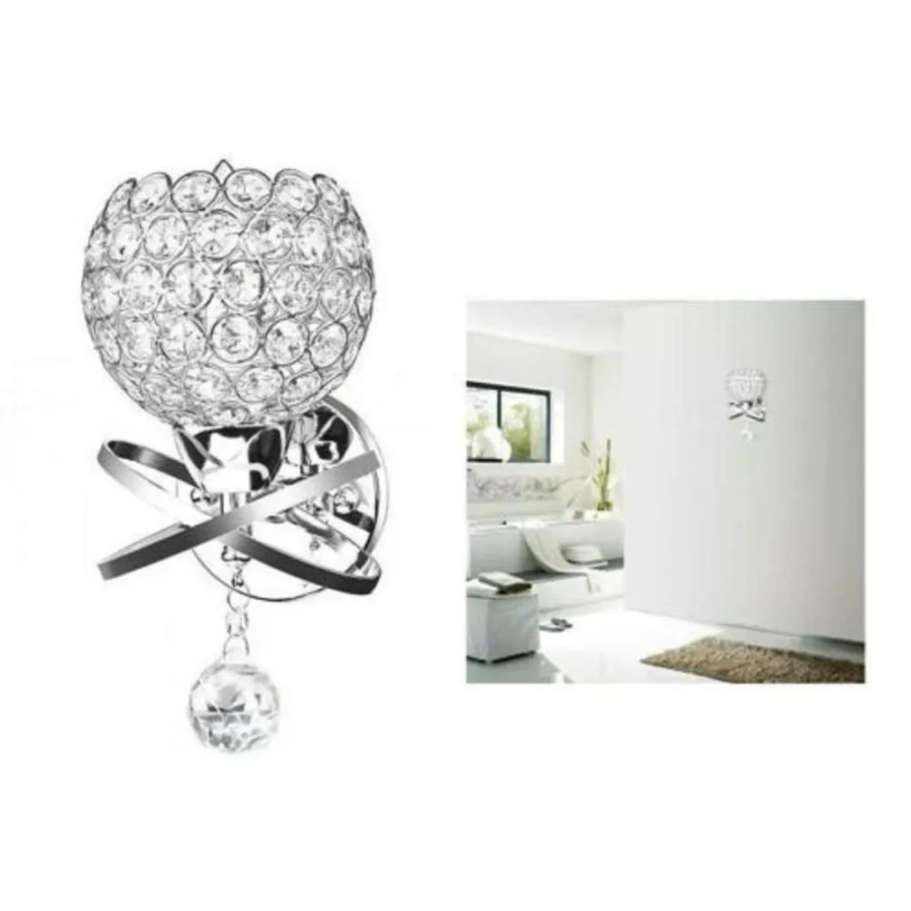 Applique moderno da parete con paralume decorato interamente con cristalli in acrilico che creano un fantastico gioco di luci.