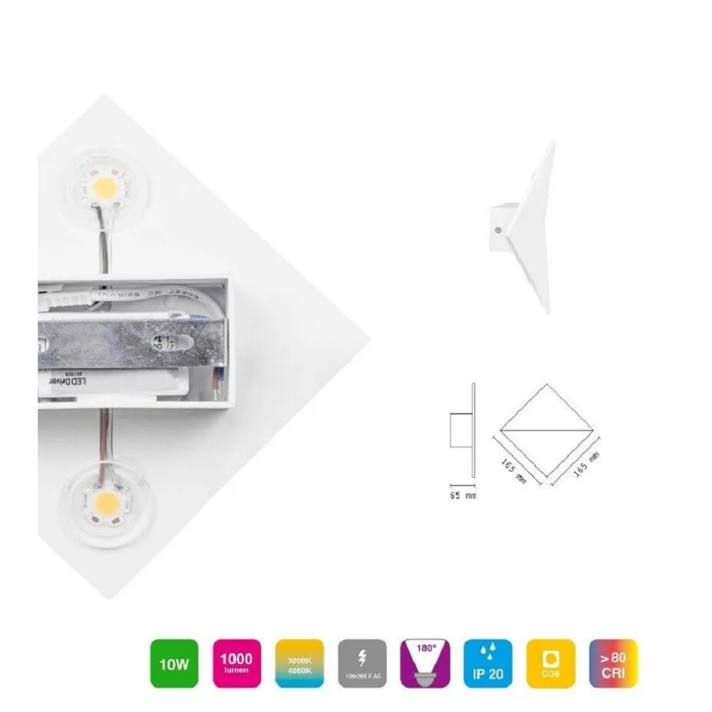 Applique led a parete da 10w con biemissione luminosa verniciata di colore bianco. La luce indiretta è in grado di regalare un’atmosfera magica per ambienti interni. Costruita con doppi chip led cob (chip on board) integrati e completa di viti per il fissaggio a parete, presenta un grado di protezione IP20. Interamente costruita in alluminio bianco e con singolare forma geometrica slim che rende la sua applicazione adatta in diversi contesti. Questo meraviglioso ed elegante applique lampada a parete è dotato di doppio led (BIEMISSIONE) con colore della luce BIANCO NATURALE 4000K.
