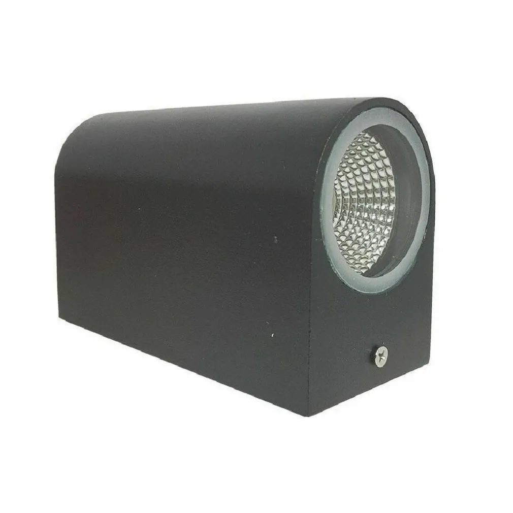 Applique da esterno in alluminio per fissaggio a parete, con led a due vie di illuminazione. Può essere applicato sia in senso verticale che in orizzontale, in base alla zona da illuminare. Il faretto si collega alla classica rete elettrica tramite collegamento del cavo elettrico. Ideale per viali, ville, alberghi, club ed altri luoghi.