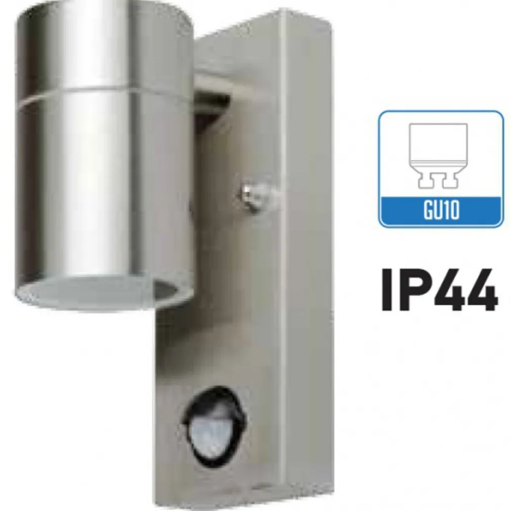 APPLIQUE LAMPADA DA PARETE CORPO IN ALLUMINIO CON SENSORE MOVIMENTO GU10 IP44