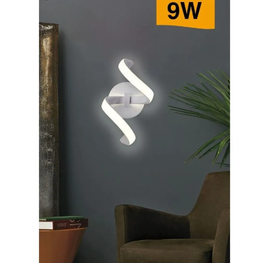 Elegante applique in alluminio dal design stilizzato adatto per installazioni a parete per l’illuminazione e la decorazione di ambienti interni, la lampada ha una forma elicoidale completa di LED integrati con potenza 9W, ideale per l’illuminazione interna di camere da letto accanto ai comodini, soggiorno, salotti, corridoi ma anche all’interno di negozi, attività commerciali, uffici per dare un tocco di eleganza alle pareti interne. Ha una resa luminosa di 72W delle vecchie lampadine alogene. Il diffusore opaco consente un’illuminazione più uniforme senza abbagliare la vista. Inoltre il collegamento alla rete elettrica è molto semplice grazie al connettore con morsetti. Questa lampada non è dimmerabile, l’accensione alla massima luminosità è praticamente istantanea. Dotata di LED ad alta efficienza energetica con un consumo ridotto ed una luminosità di 720 lumen.